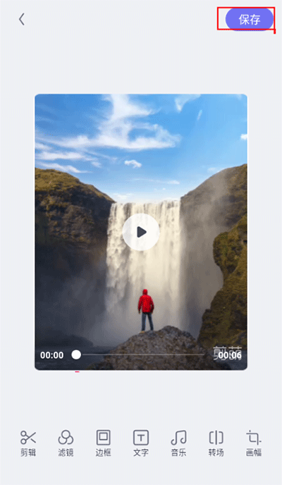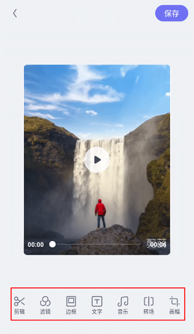2、进入编辑界面,包括剪辑、滤镜、边框、文字、音乐等功能,可根据需求来编辑美化视频,